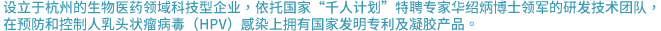 公司设立于杭州高新技术园区,公司业务聚焦女性健康,依托HPV领域领先的技术研发团队,在预防、检测和控制人乳头状瘤病毒(HPV)感染上拥有国家发明专利,以及创新型发展HPV居家自采样等检测服务。